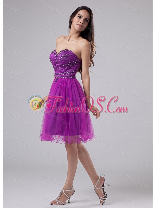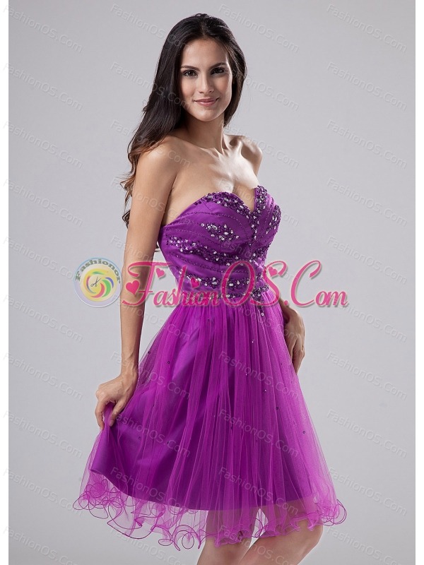 Purple Sexy Prom Dress With Beaded Decorate Sweetheart Organza In 2013