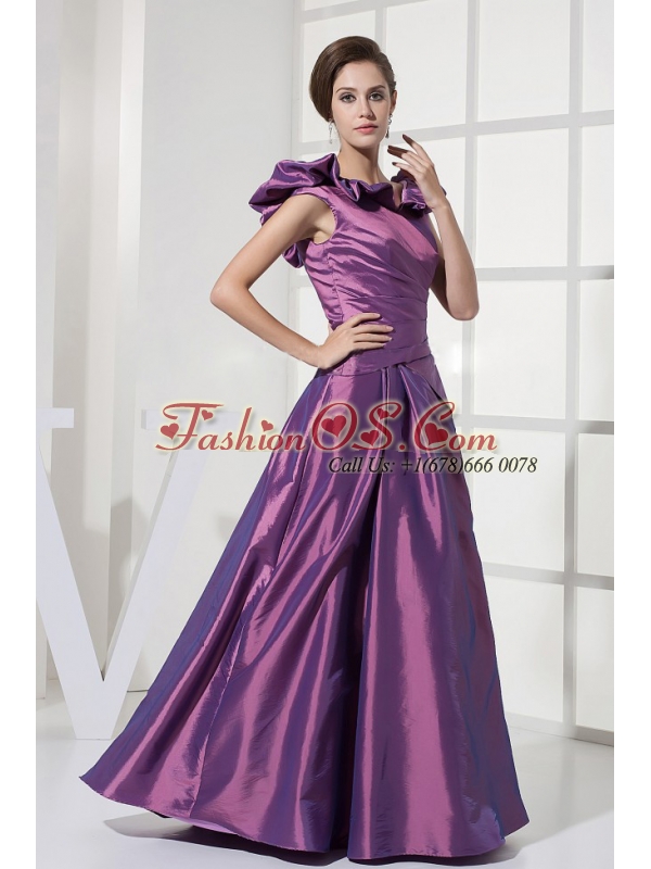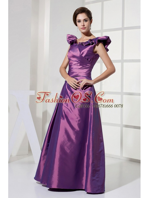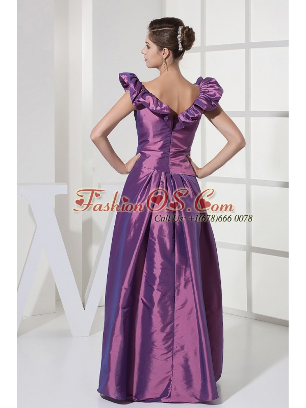 V-neck A-line Purple Taffeta 2013 Prom Dress Floor-length