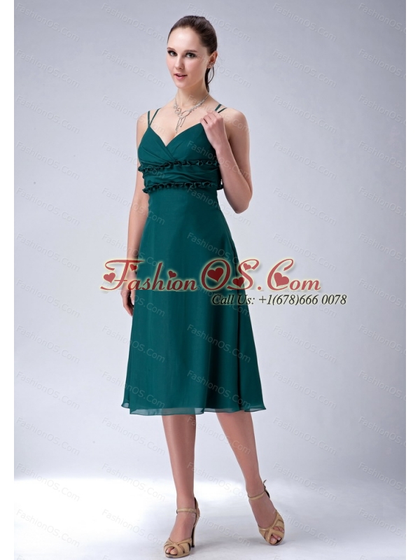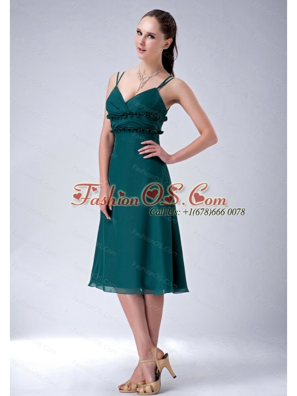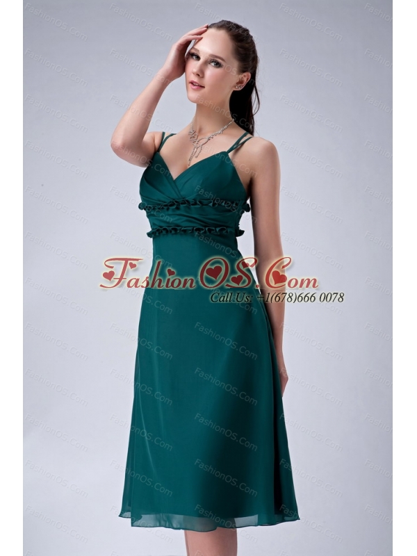 Dark Green Straps Ruch Cheap Dama Dress On Sale