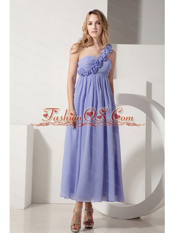 fashionable Hand Made Flowers One Shoulder Ankle-length Dama Dress
