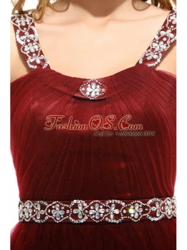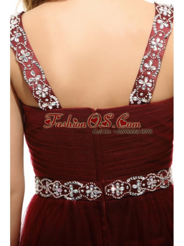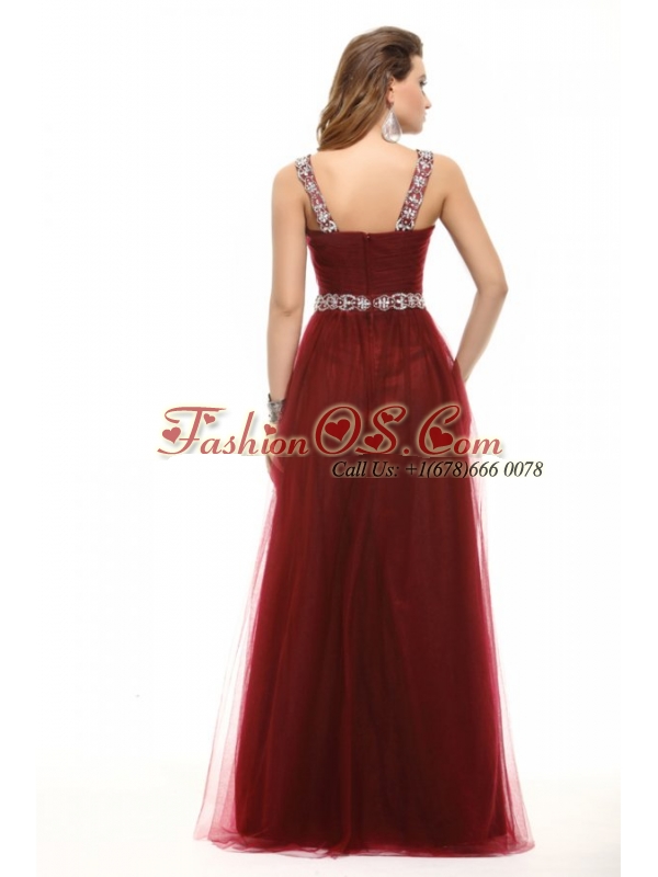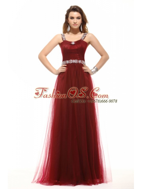 Inexpensive Empire Square Tulle 2014 Long Prom Dress with Beading