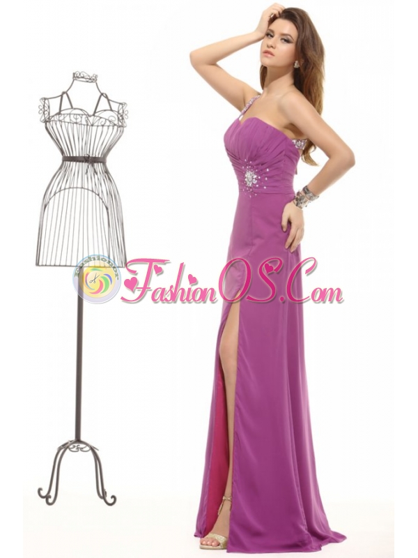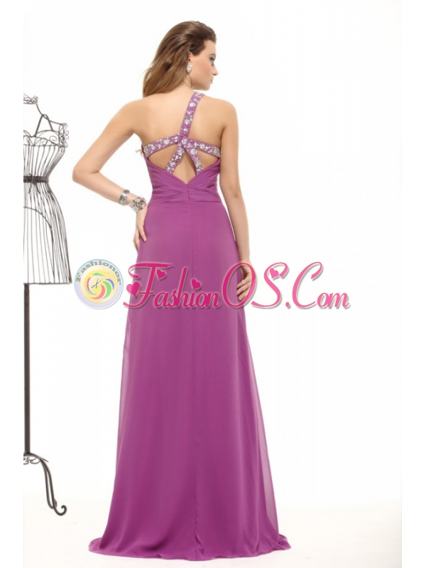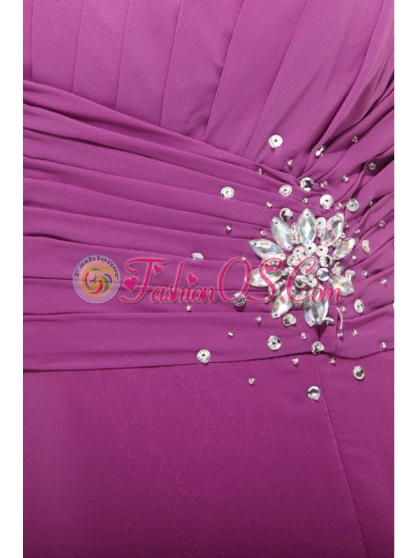 Fuchsia Column Beading One Shoulder Chiffon Prom Dress with Criss Cross