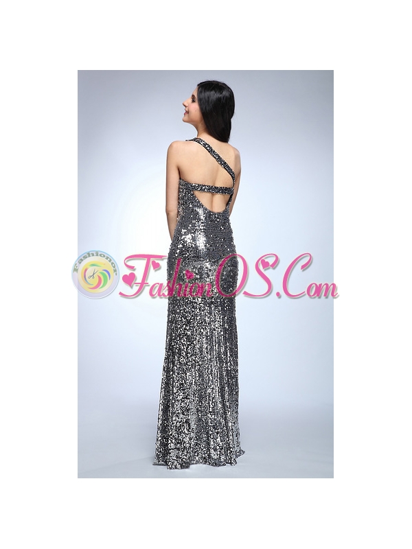 Sheath Silver One Shoulder Sequins Beading Floor-length Prom Dress