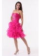 Sweetheart Mini-length Beaded Decorate Brust Column Purple Prom Dress