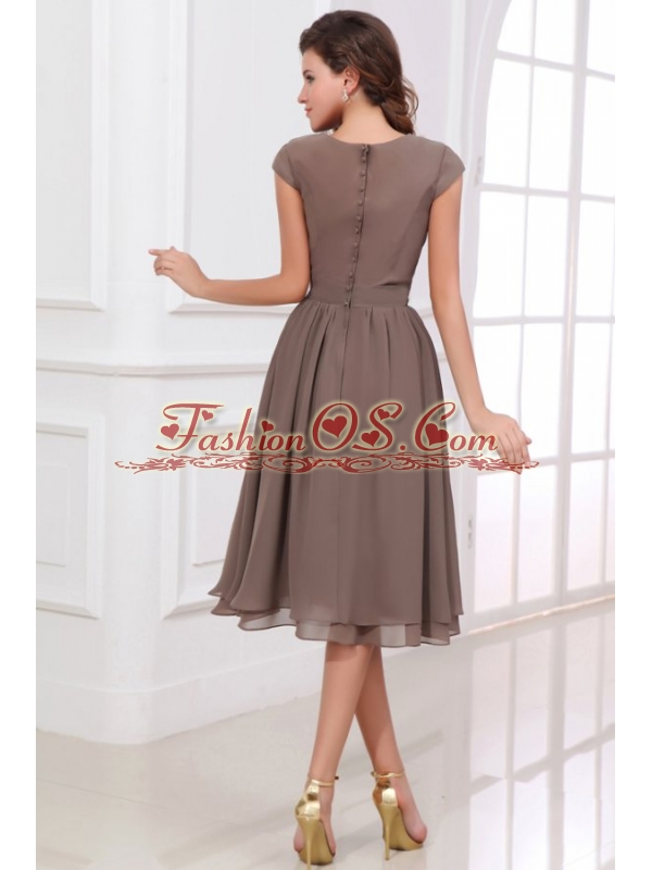Simple A-line Scoop Prom Dress with Short Sleeves Knee-length
