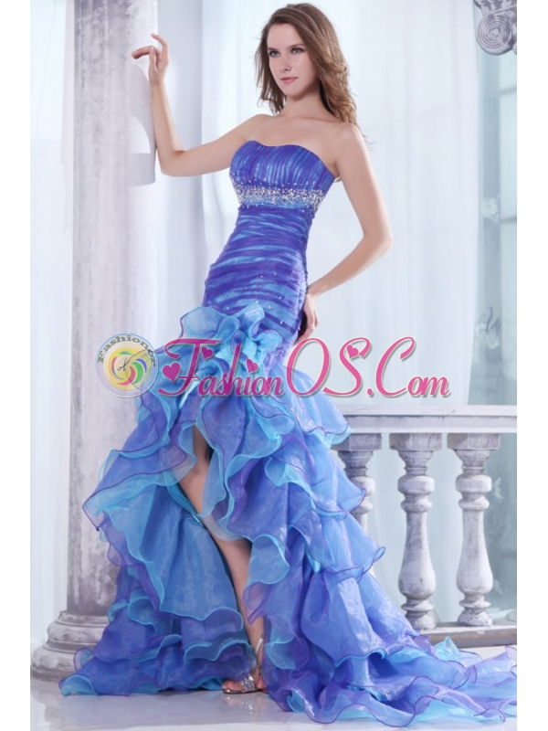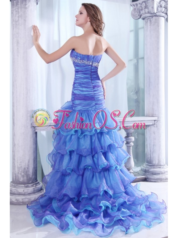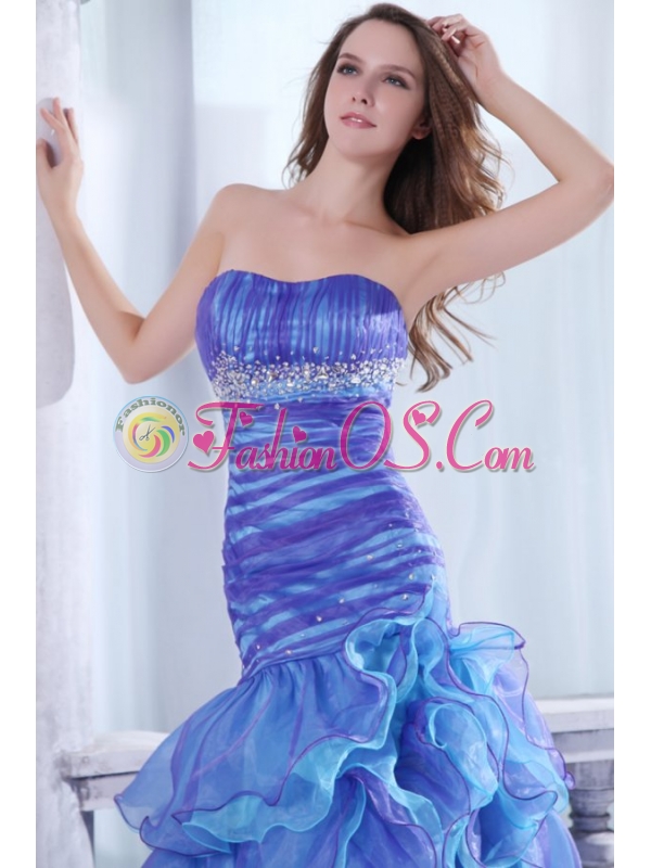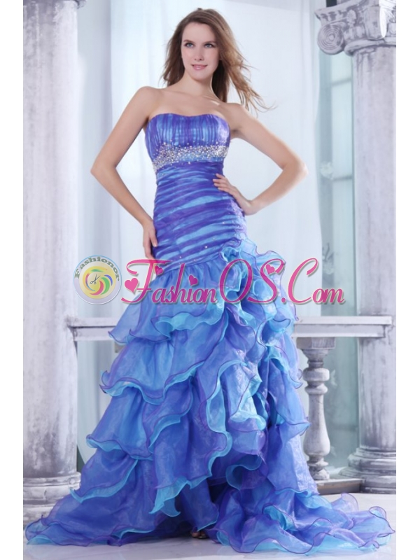 Strapless Beading and Ruffles Layered Mermaid Purple and Blue Prom Dress