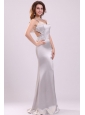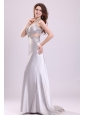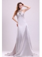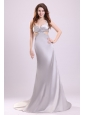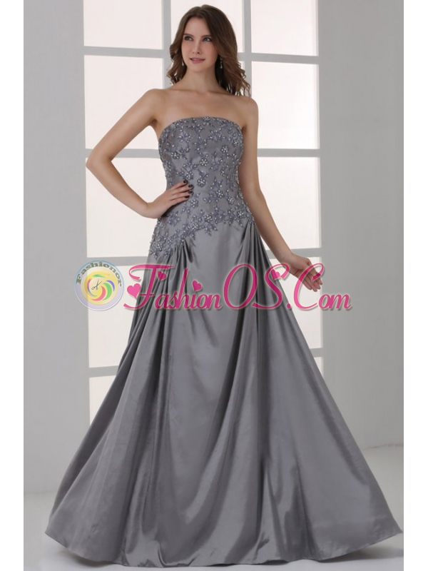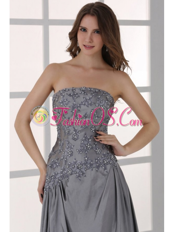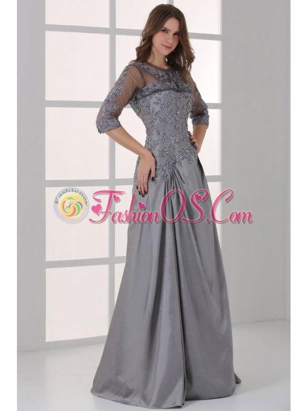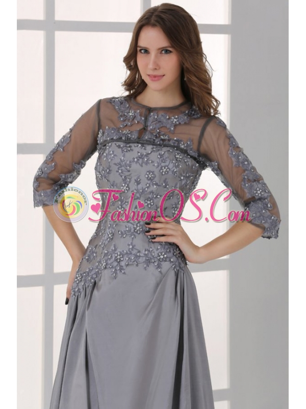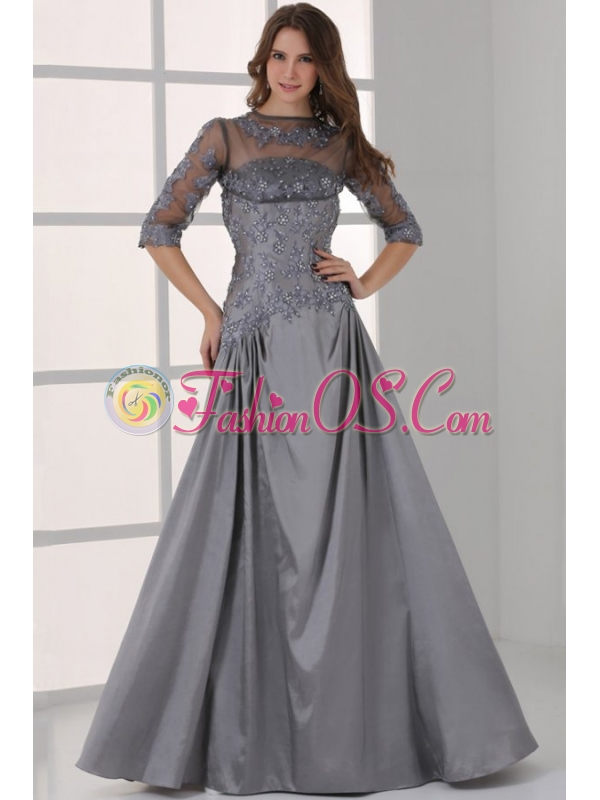 Grey A-line Scoop Half Sleeves Prom Dress with Appliques and Beading