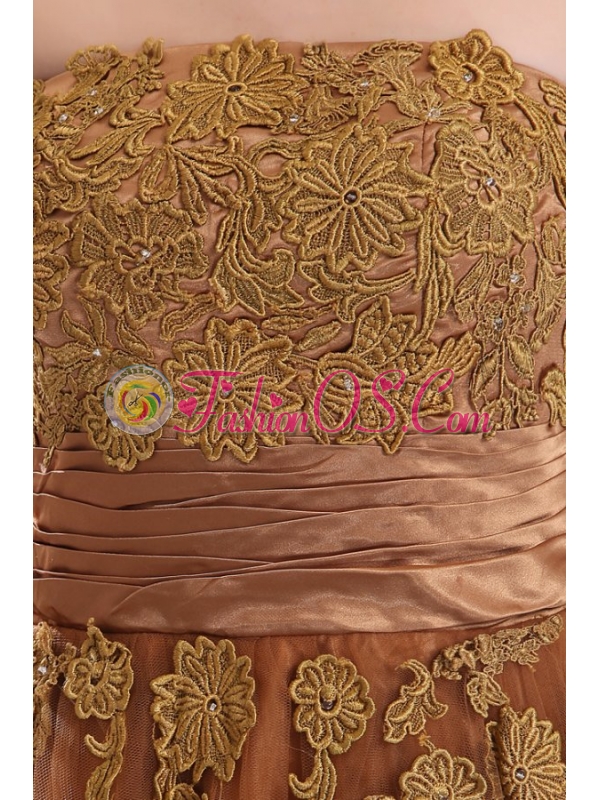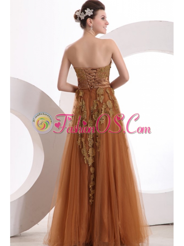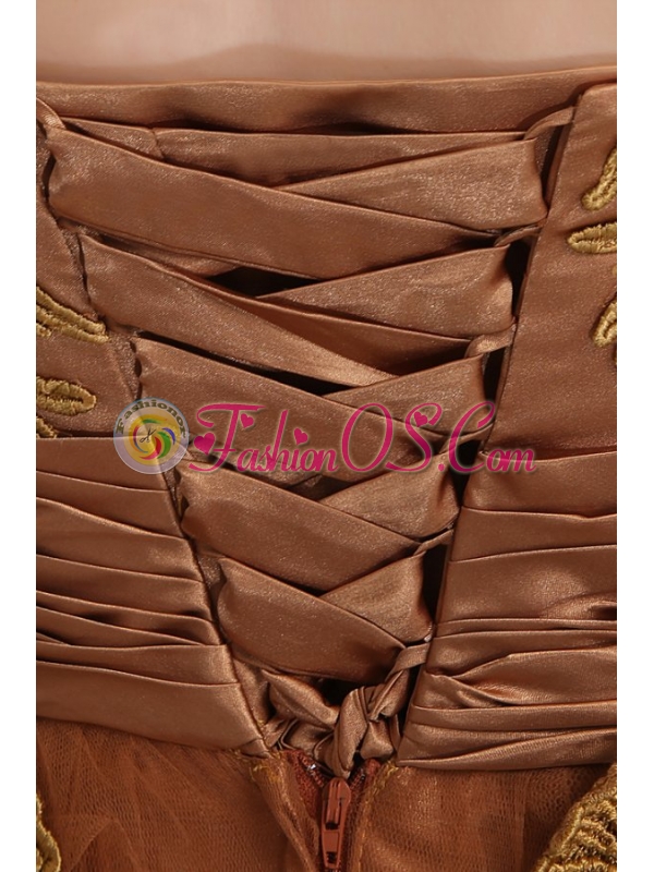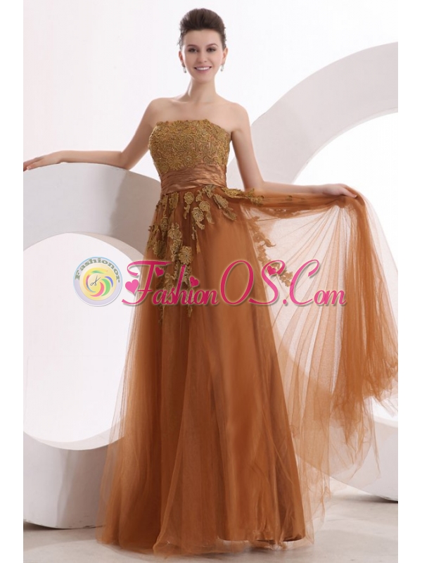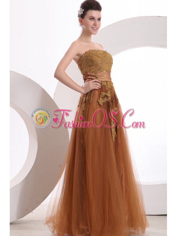 Popular Strapless Empire Floor-length Appliques Prom Dress in Brown
