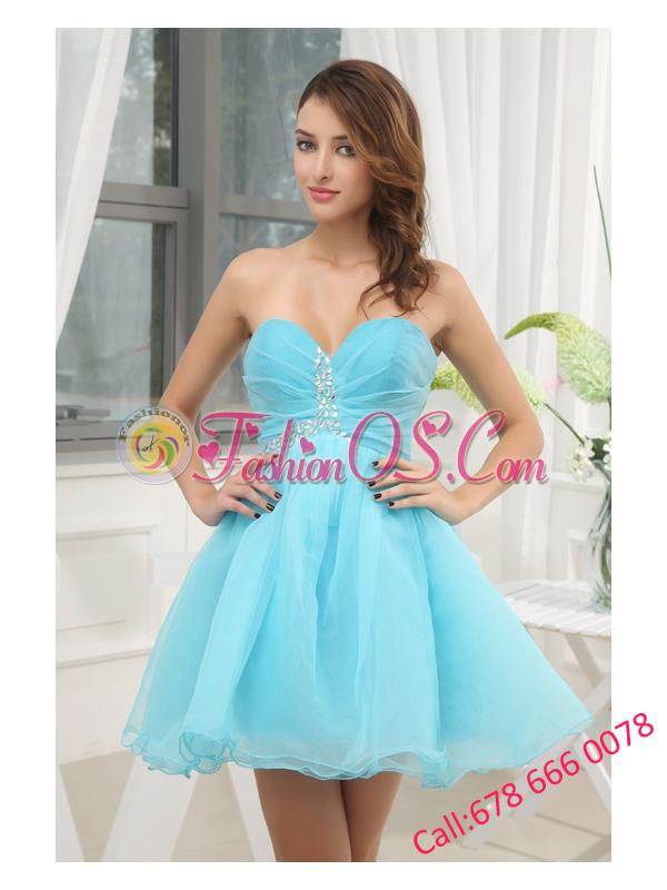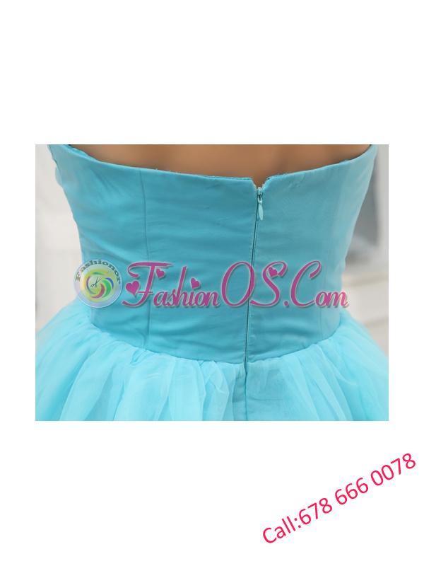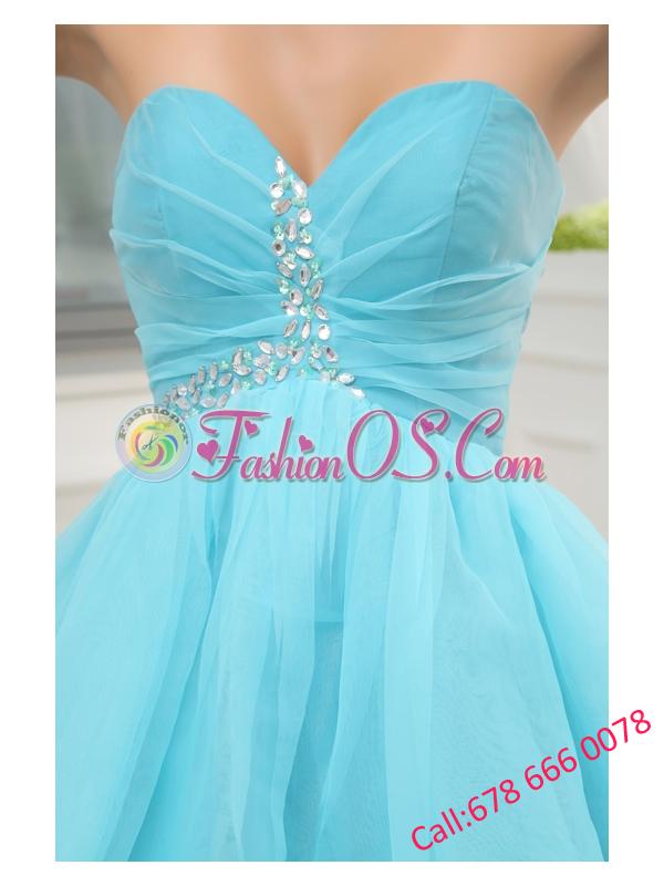 Aqua Blue Sweetheart Beading and Ruching Prom Dress