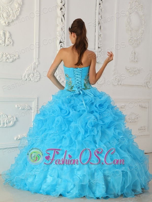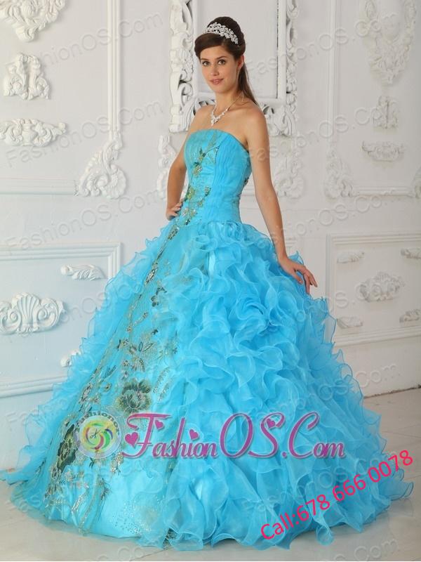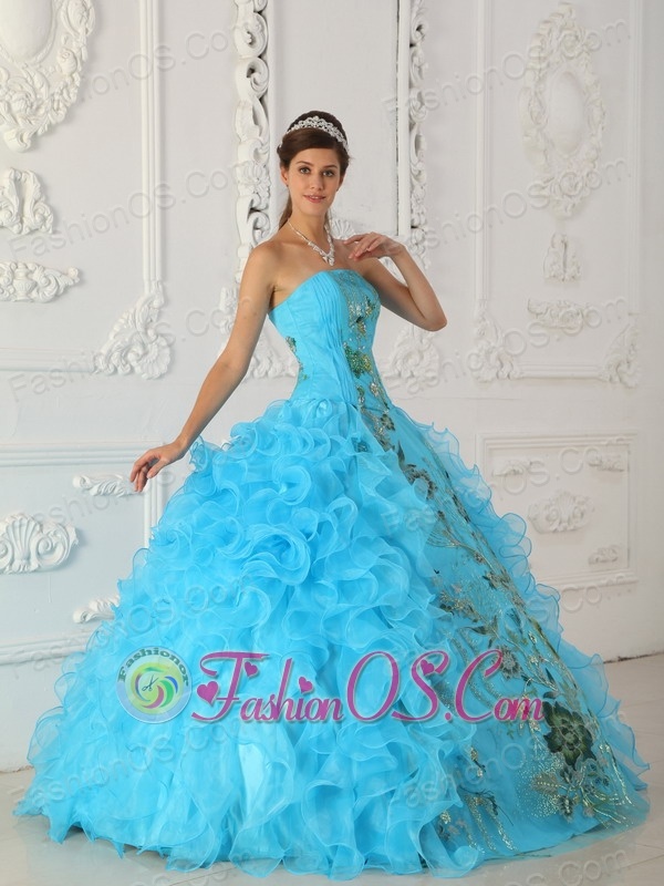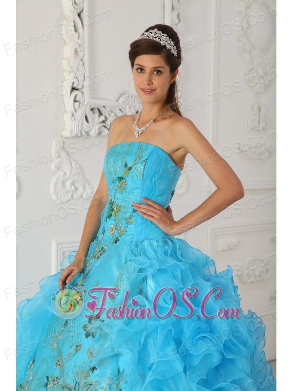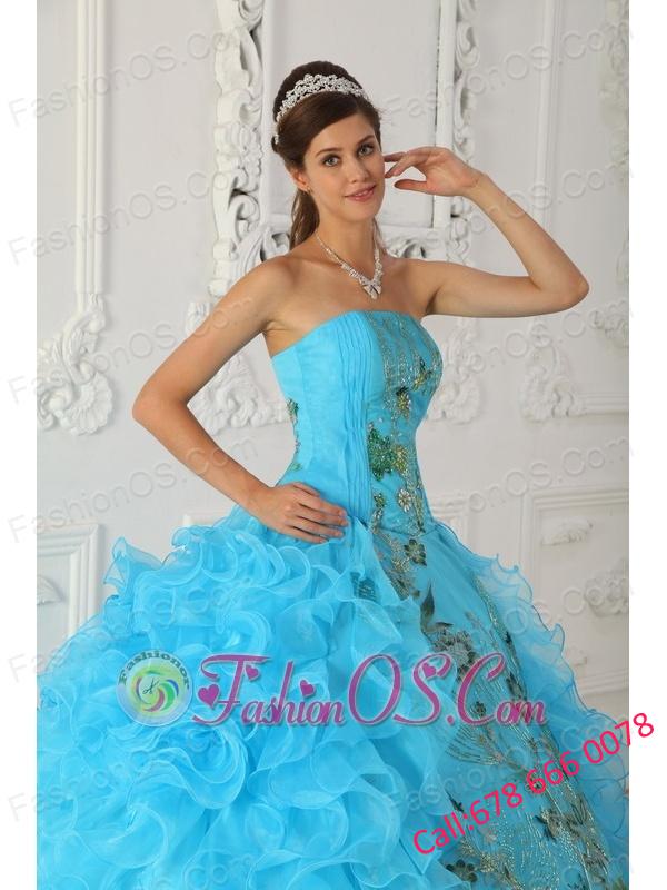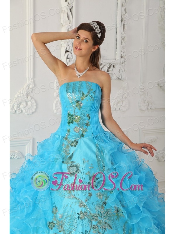 Exquisite Aqua Blue Quinceanera Dress Strapless Embroidery Ball Gown