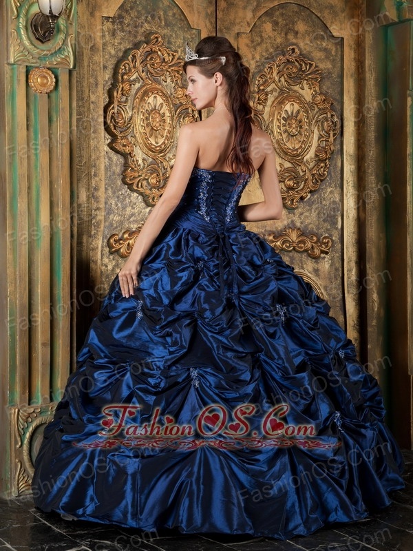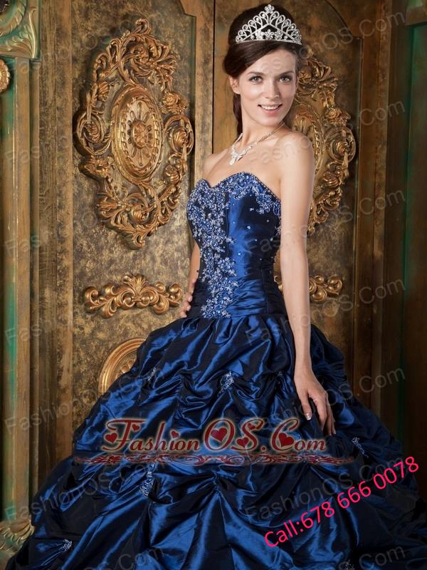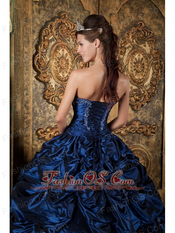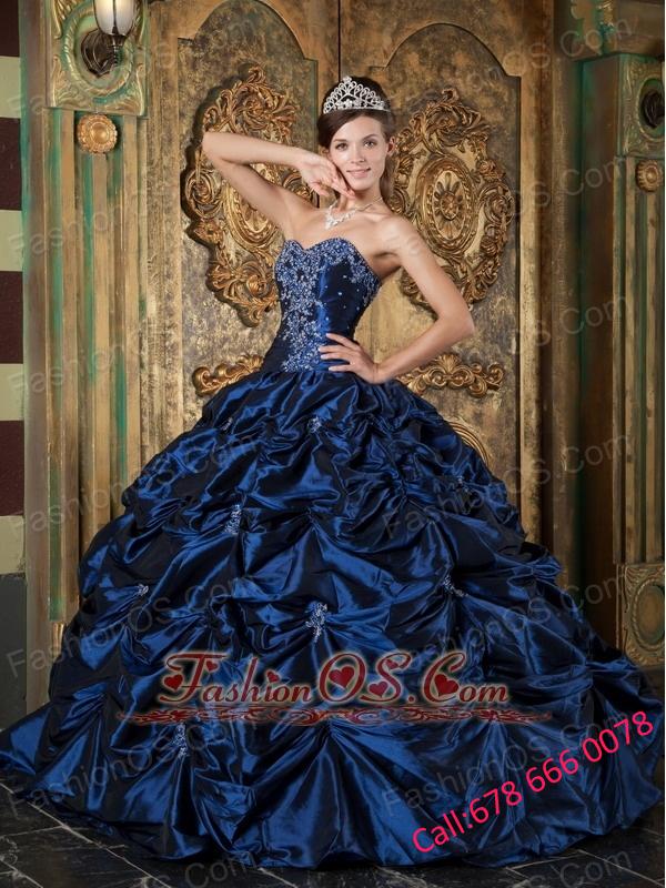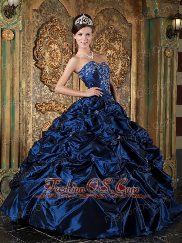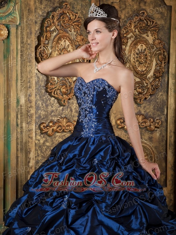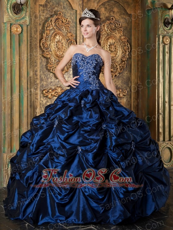 Pretty Navy Blue Quinceanera Dress Sweetheart Picks-up Taffeta Ball Gown