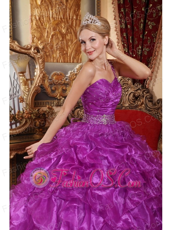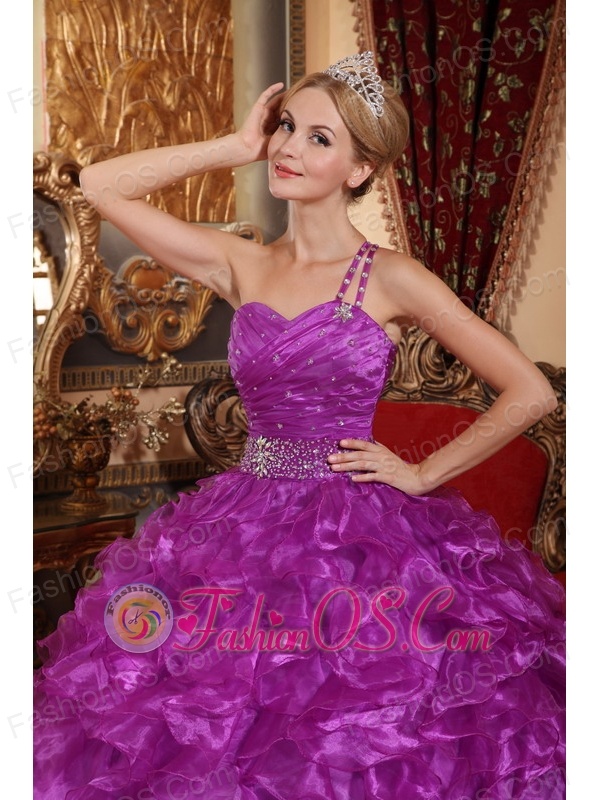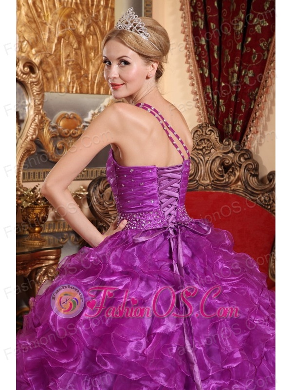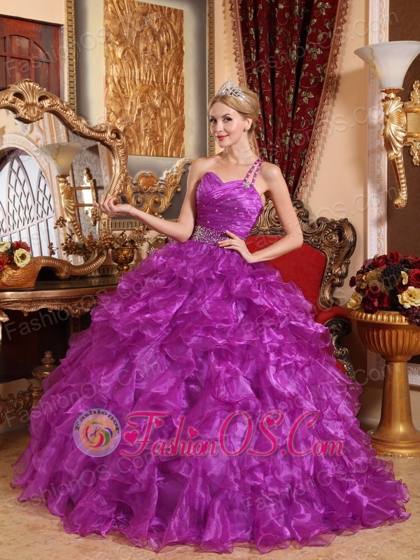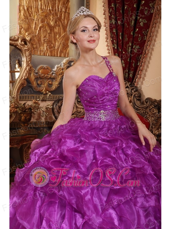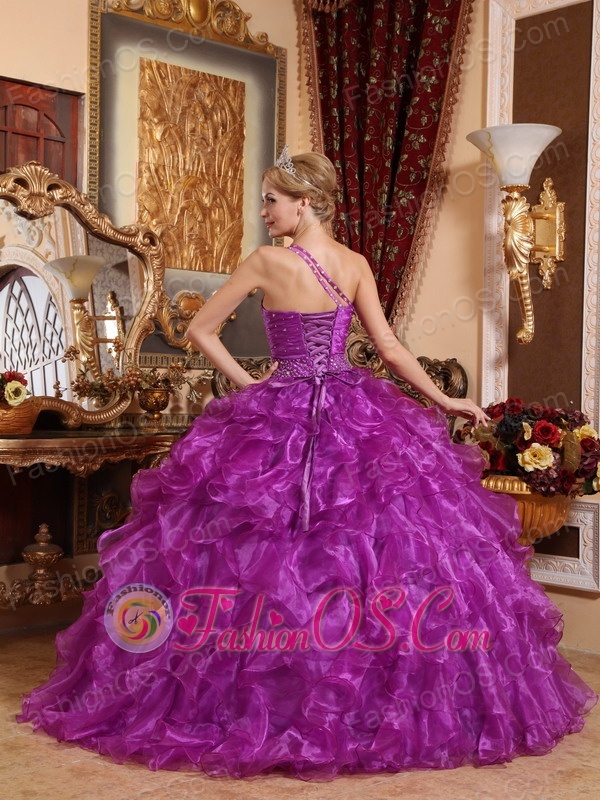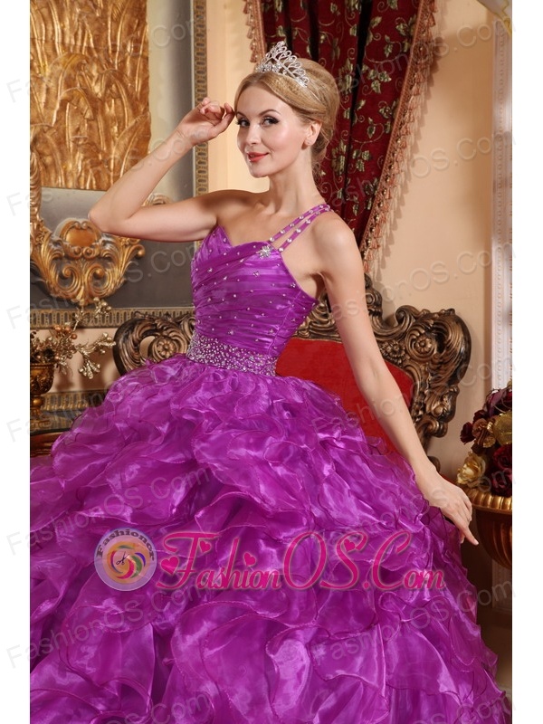 Low Price Purple Quinceanera Dress One Shoulder Organza Beading Ball Gown