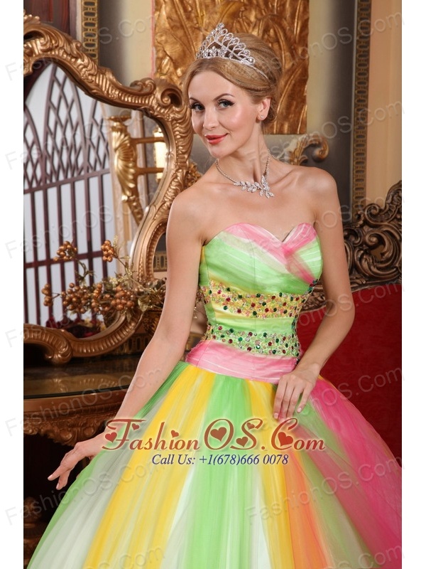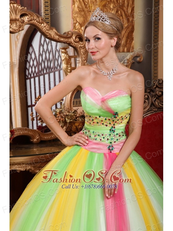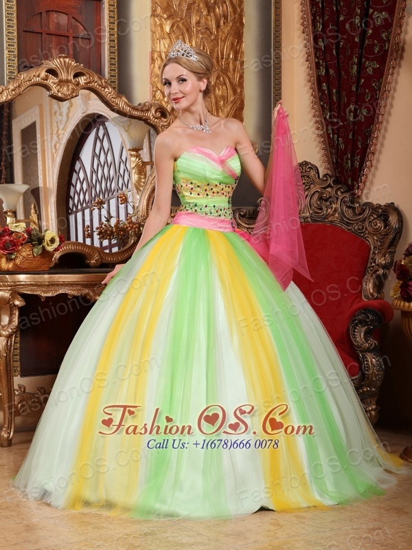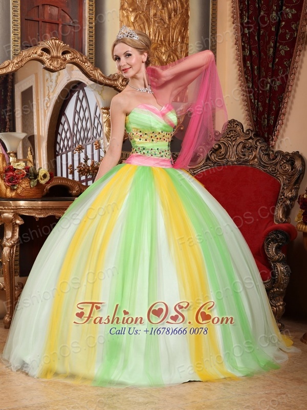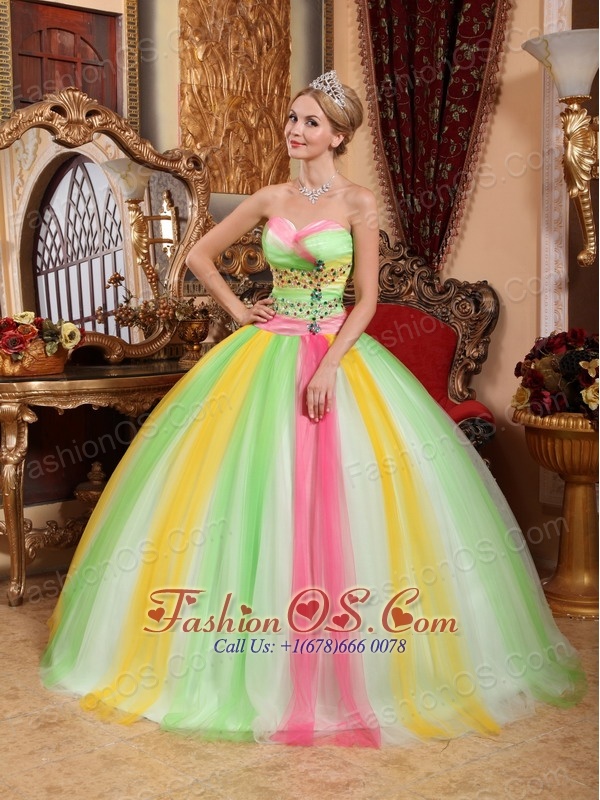 Latest Multi-color Quinceanera Dress Sweetheart Tulle Beading Ball Gown