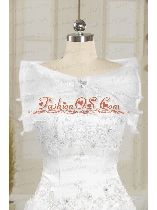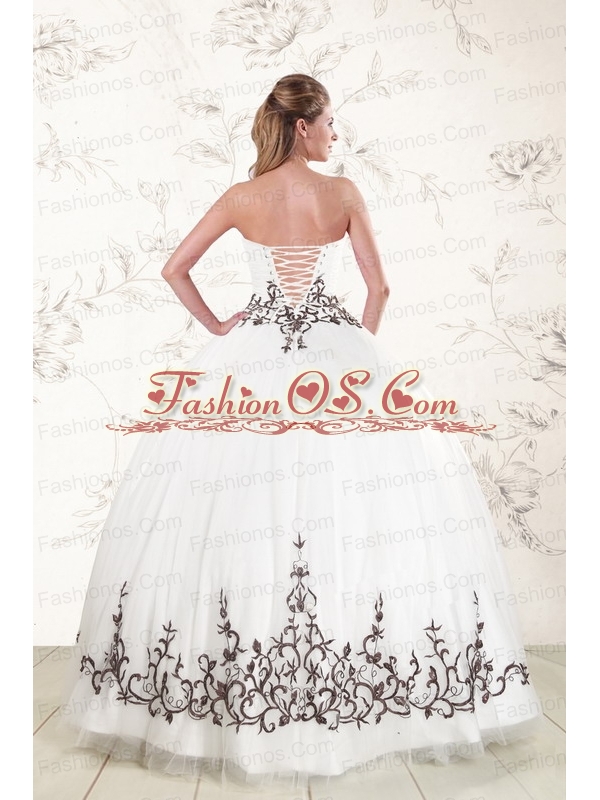 2015 Puffy Appliques Strapless White Quinceanera Dresses