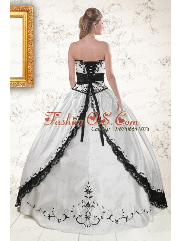 2015 Exquisite Embroidery Quinceanera Dresses in White and Black