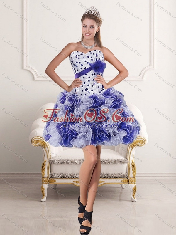 Pretty Sweetheart White and Purple 2015 Prom Dress with Ruffles and Beading