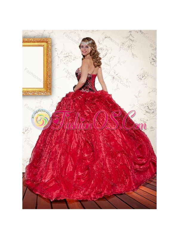 2015 Red Sweetheart Luxurious Quinceanera Dresses with Beading and Ruffles