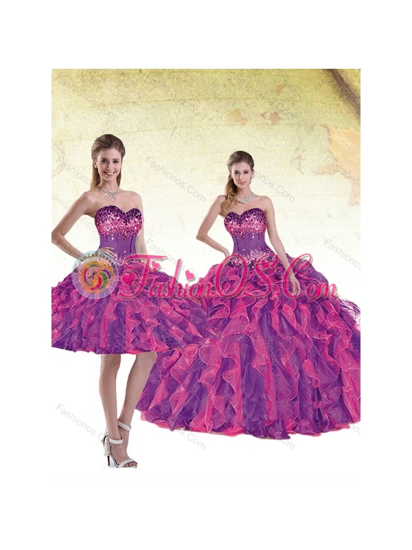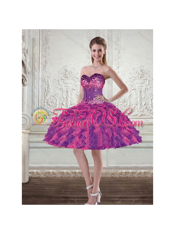 2015 Romantic Multi Color Quinceanera Dresses with Beading and Ruffles