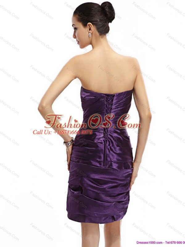 Modest Sweetheart Mini Length Prom Dresses with Ruching and Beading