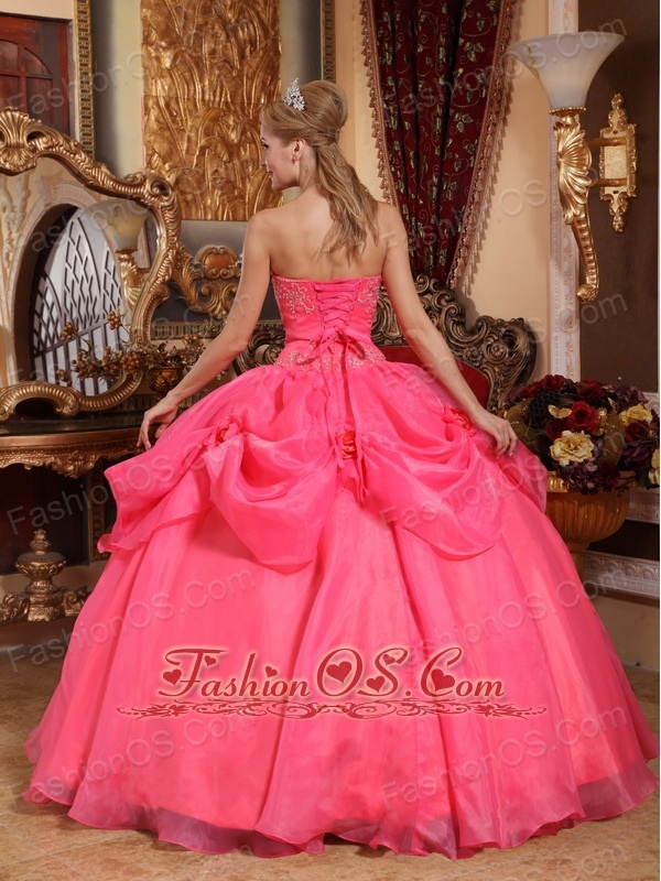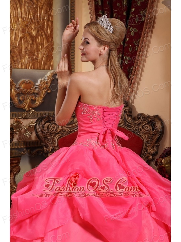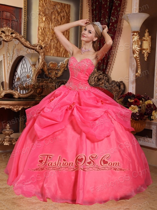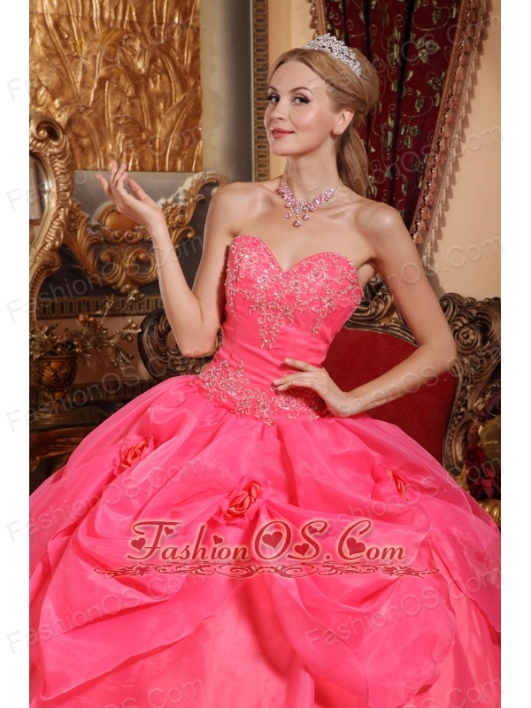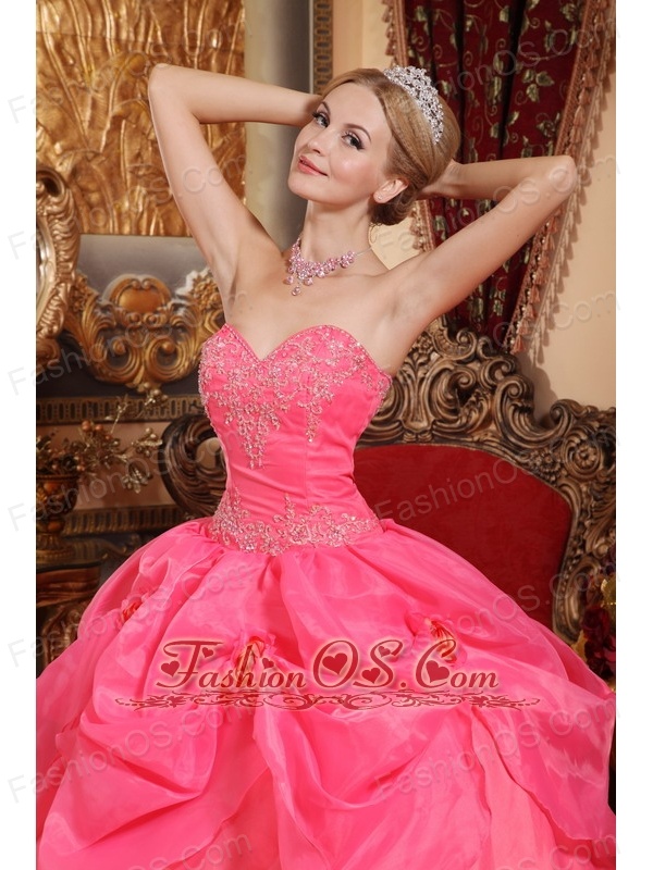 Popular Coral Red Quinceanera Dress Sweetheart Taffeta and Organza Appliques Ball Gown