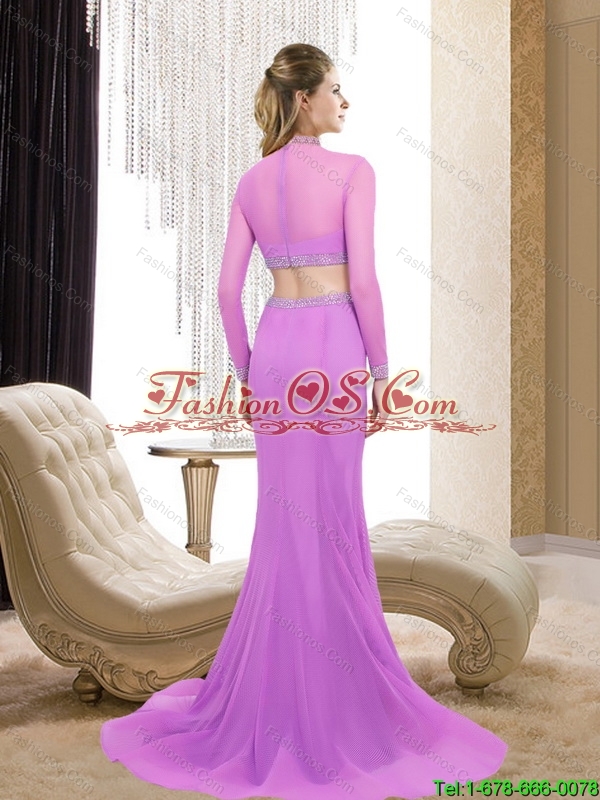 2015 Discount High Neck Column Beading Lilac Prom Dresses