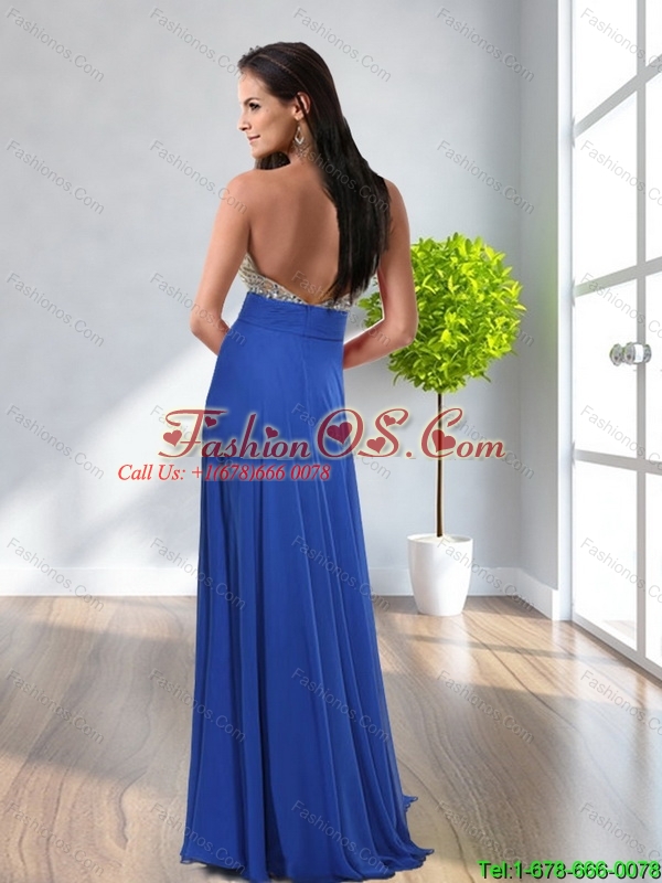 2015 Discount Empire Beading Halter Top Royal Blue Prom Dresses