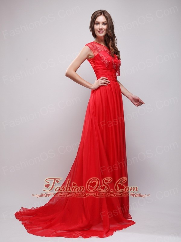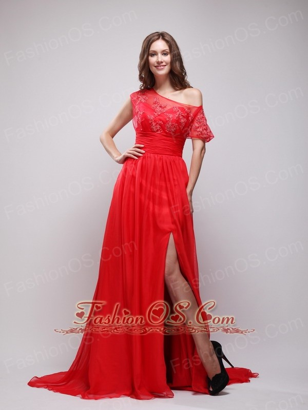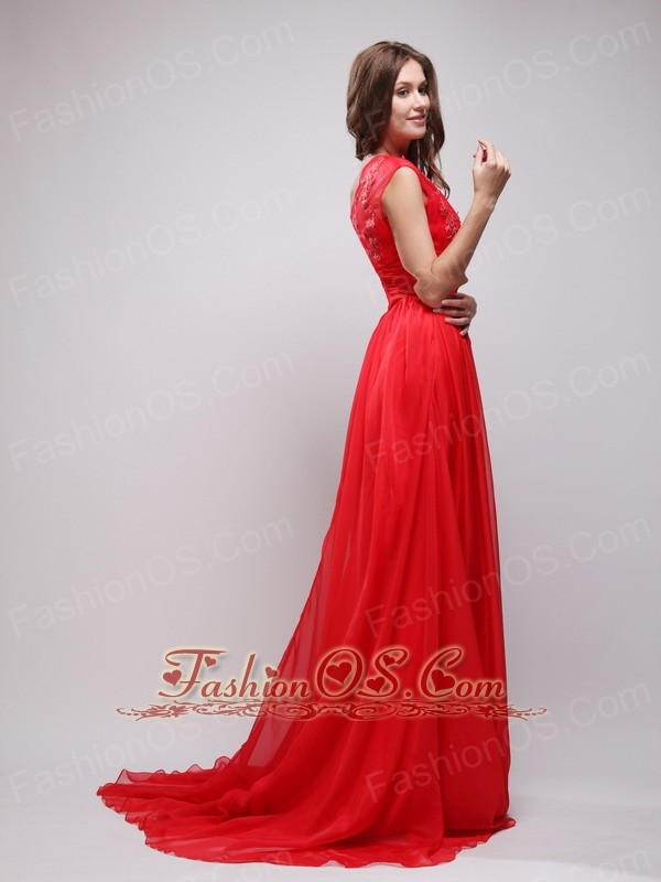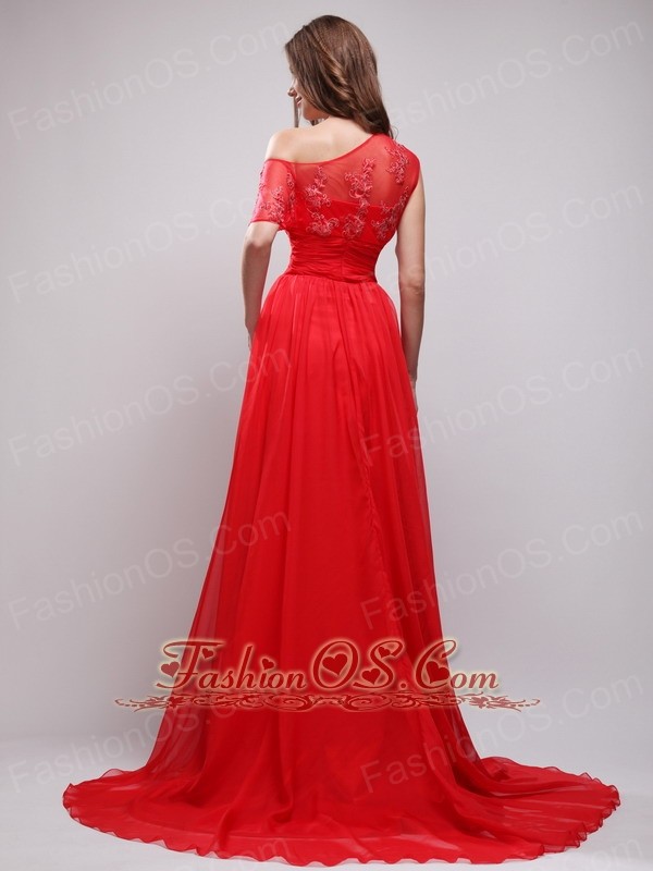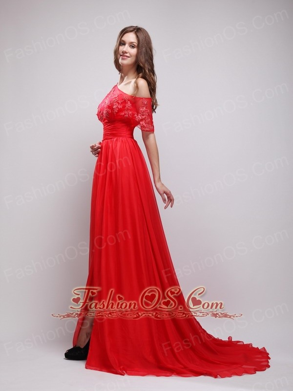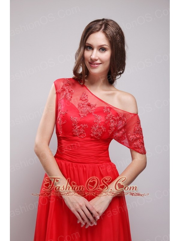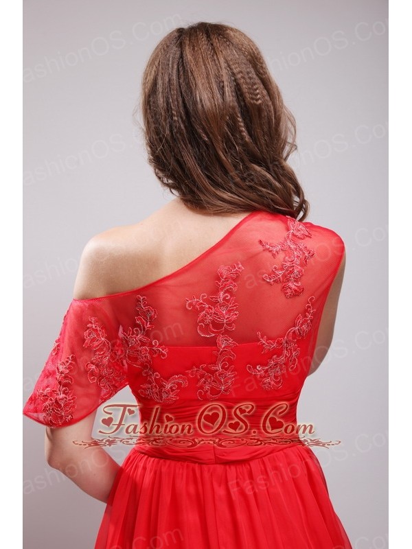 Bright Red Empire Asymmetricalr Chiffon Prom / Evening Dress with Appliques