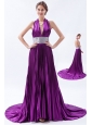 Purple A-line Sweetheart Floor-length Organza Beading Prom / Pageant Dress
