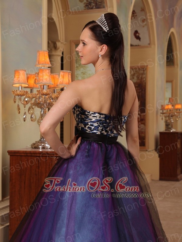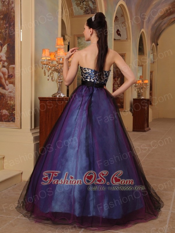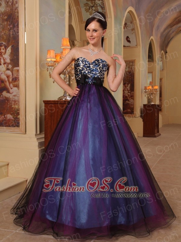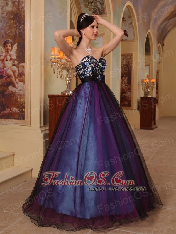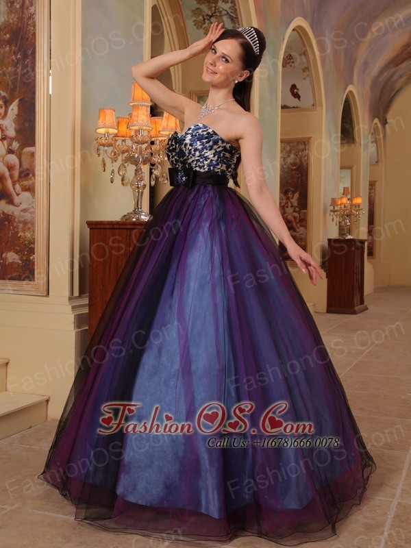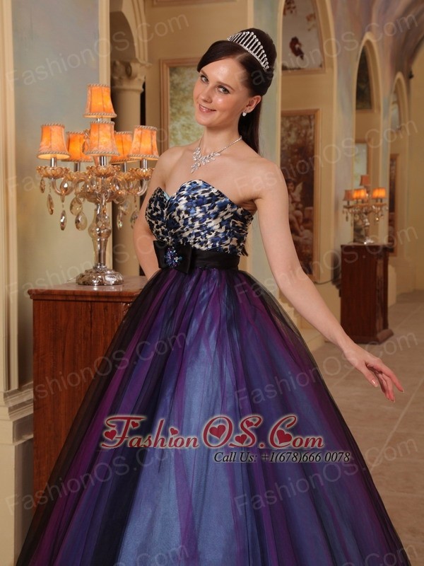 Sassy dress in leopard!Sweetheart leopard bodice with a non-removable bow trimed to create a slimming A-line silhouette and a different color beading made flower in the middle of bow.The romantic purple skirt covered two-tier different tulle.This is a classy party dress and can be used for any fun event including dances, holidays, parties, and more.