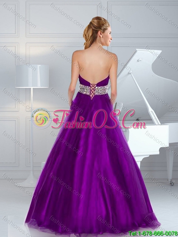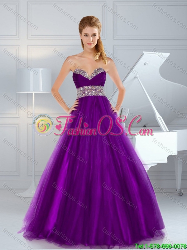 2015 Fall Gorgeous A Line Beaded Purple Prom Dresses with Brush Train