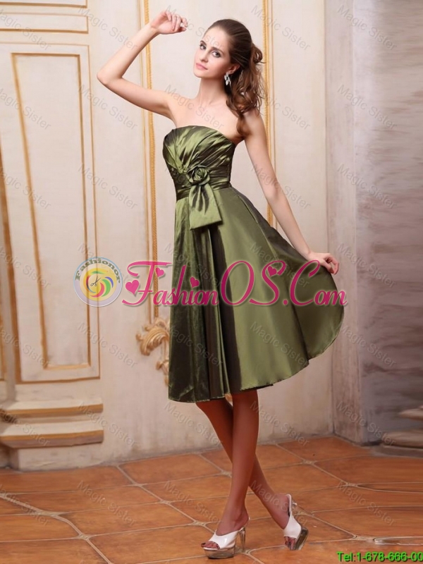 Popular Strapless Short Prom Dresses with Hand Made Flowers