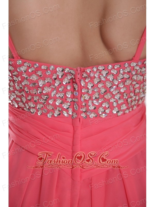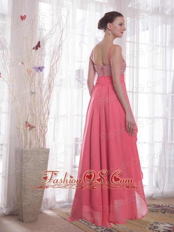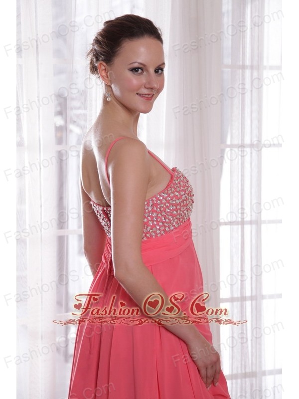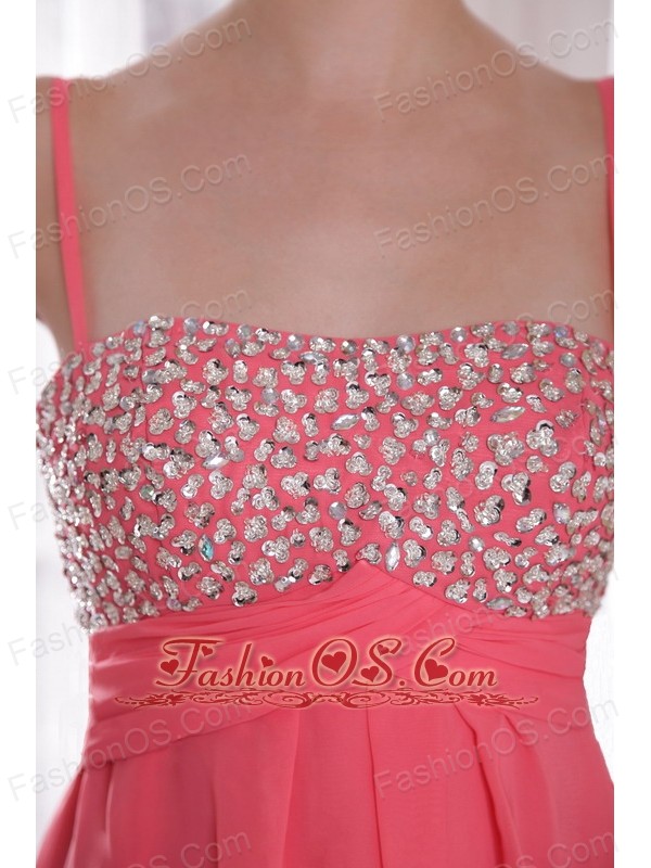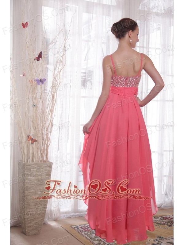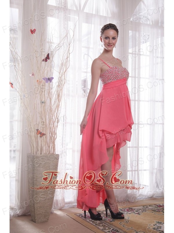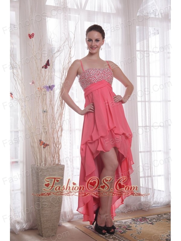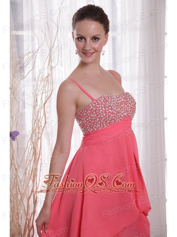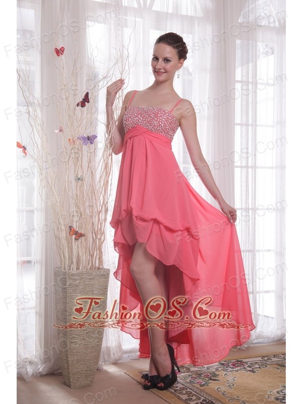 Watermelon Empire Straps High-low Chiffon Beading Prom Dress