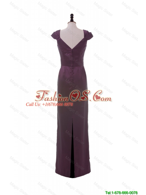 Beautiful Cheap V Neck Belt Burgundy Long Prom Dresses for Winter
