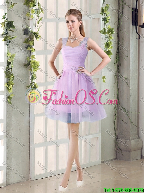 2016 Summer A Line Straps Ruching Prom Dresses with Hand Made Flowers