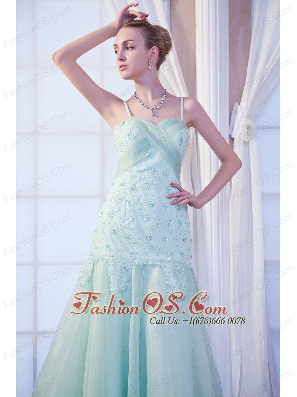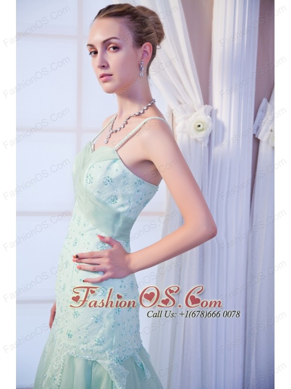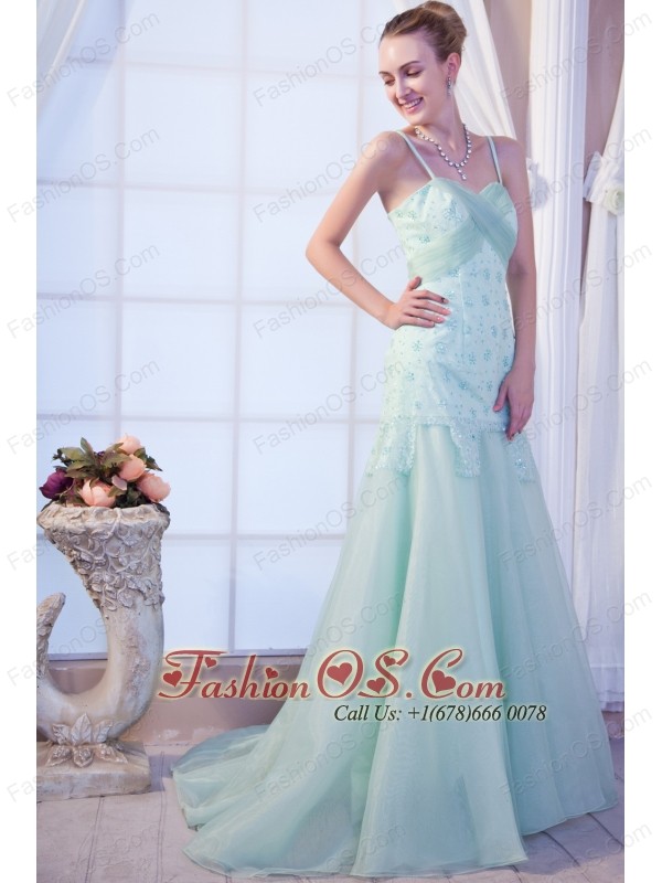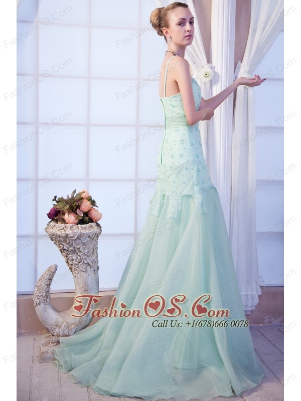 Apple Green Empire Straps Brush Train Organza Appliques Homecoming Dress