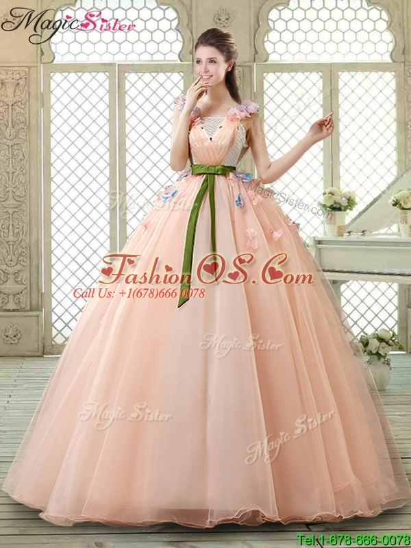 New Style Straps Quinceanera Dresses with Appliques and Belt