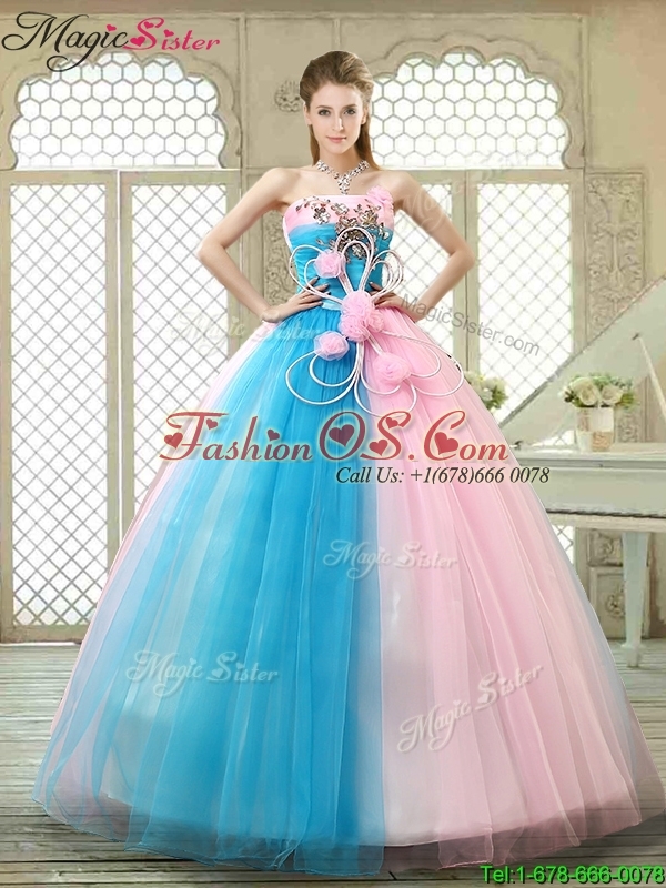 Fashionable Hand Made Flowers Quinceanera Gowns with Strapless