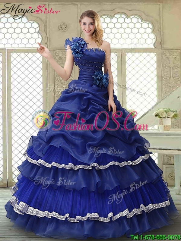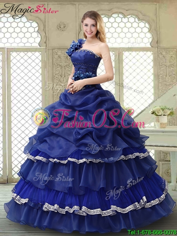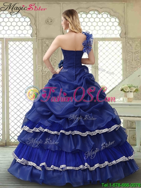 Elegant 2016 Spring Ruffled Layers One Shoulder Quinceanera Dresses