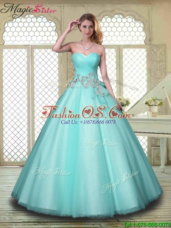 2016 Spring New Style Beading Sweetheart Quinceanera Dresses in Aqua Blue