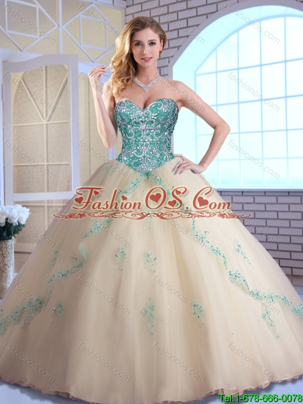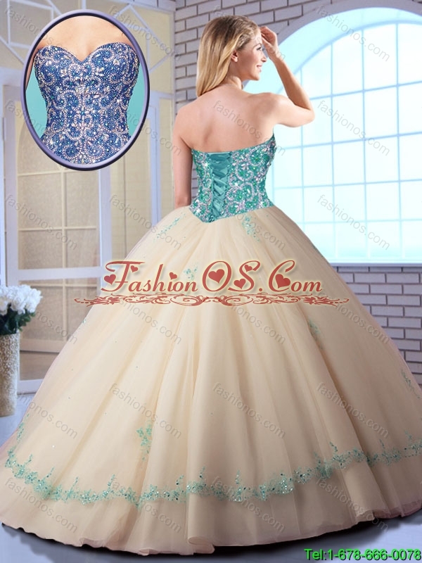 Pretty Champagne Quinceanera Dresses with Appliques and Beading