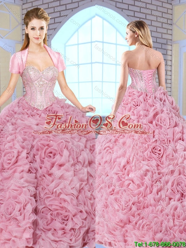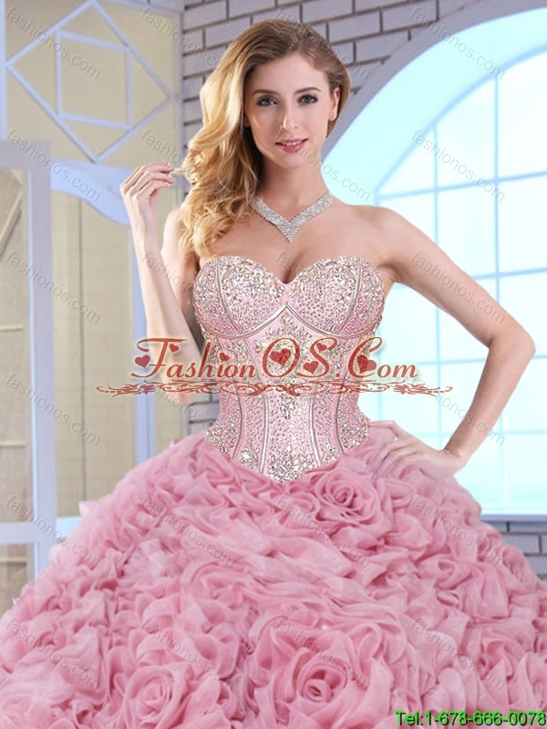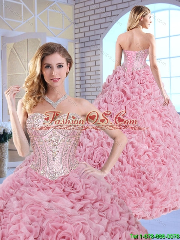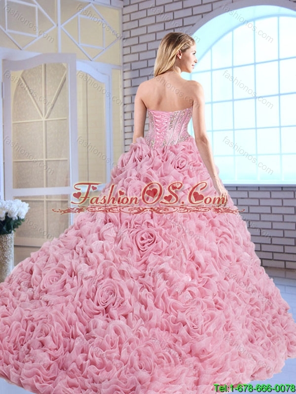 2016 Luxurious Beading Brush Train Quinceanera Gowns with Rolling Flowers