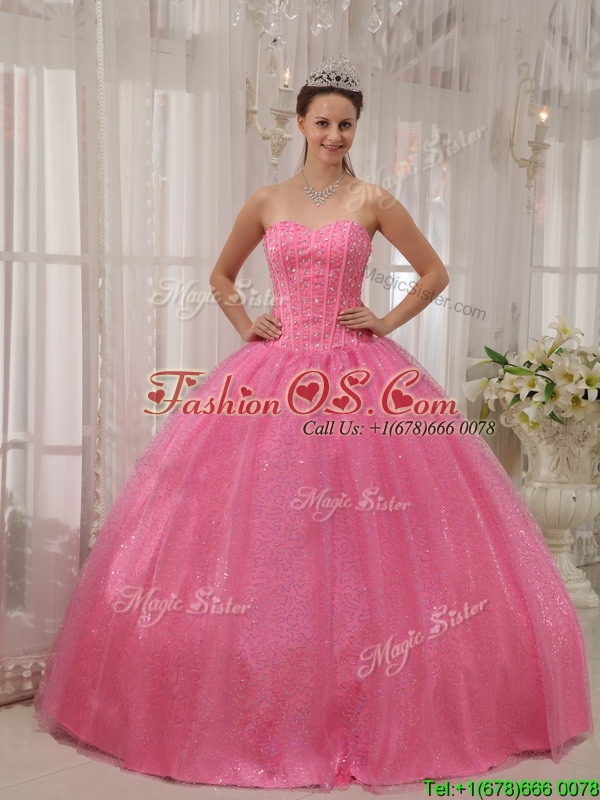 Exclusive Sweetheart Beading Pink Quinceanera Gowns for 2016
