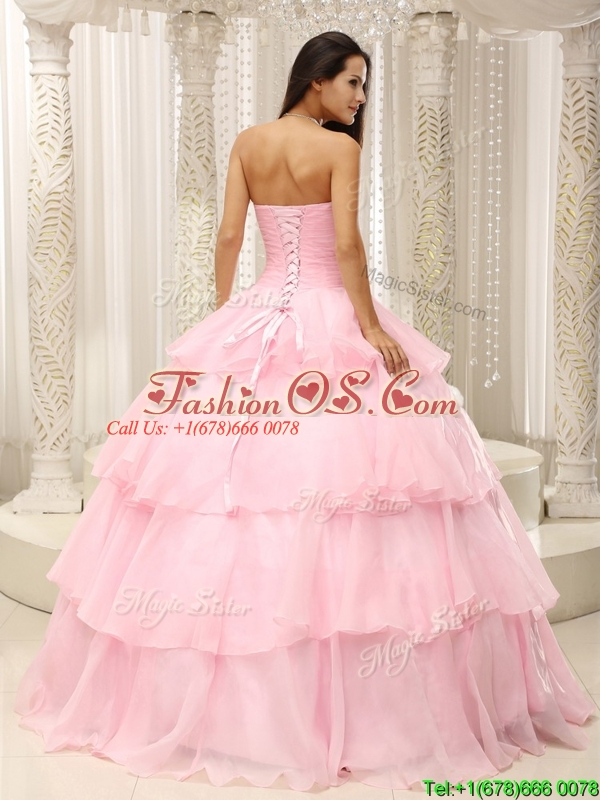 Cute Beading and Ruffles Sweet 16 Dresses in Baby Pink