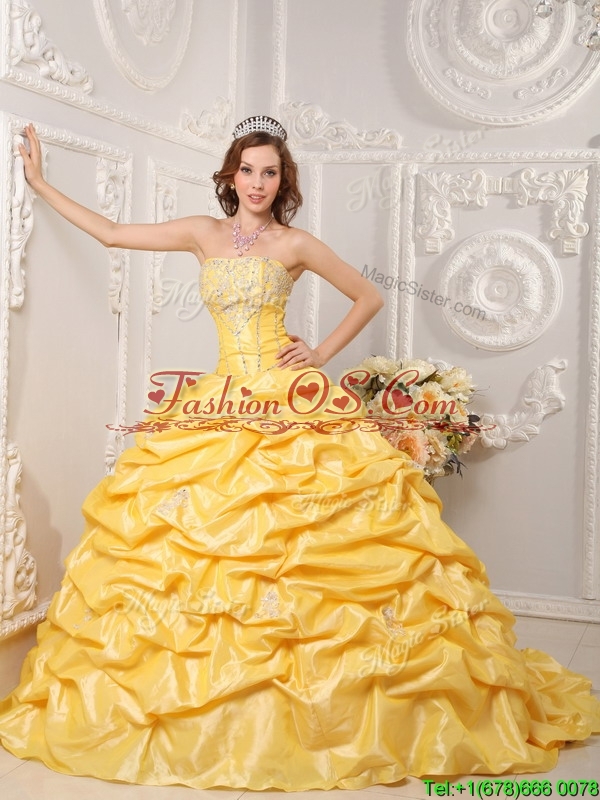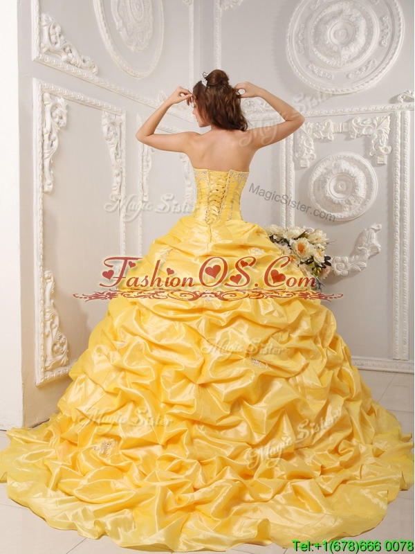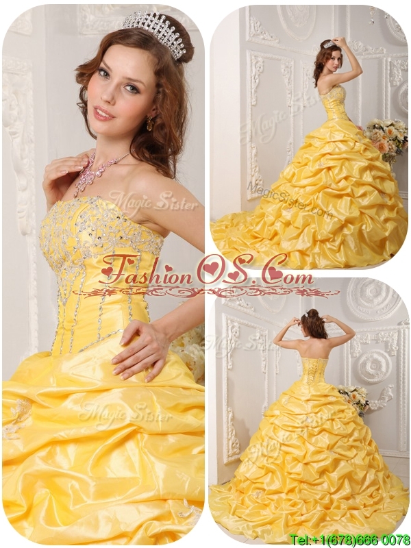 Perfect Pick Ups and Appliques Quinceanera Gowns with Court Train