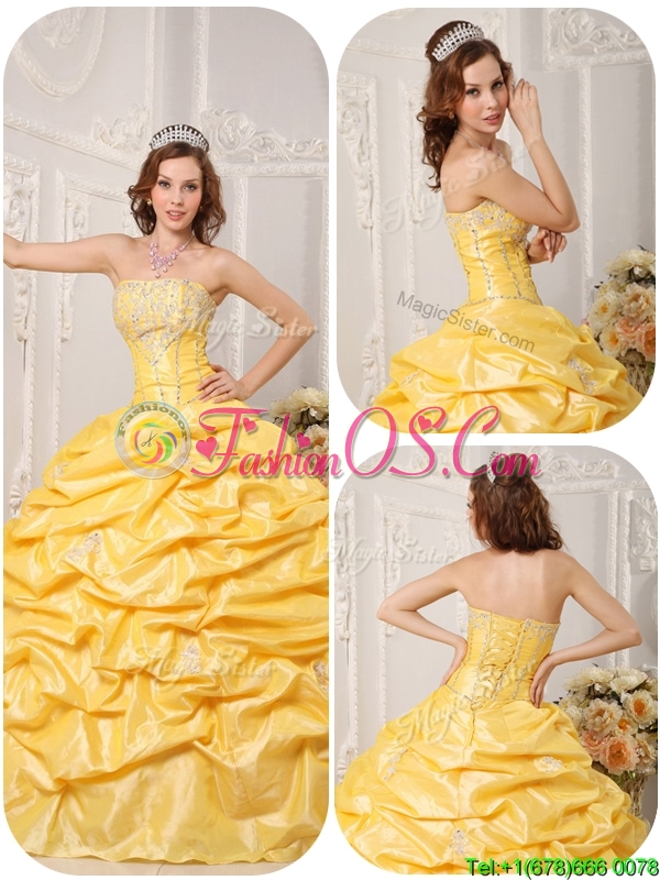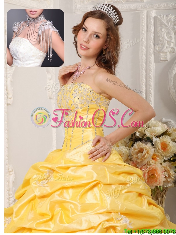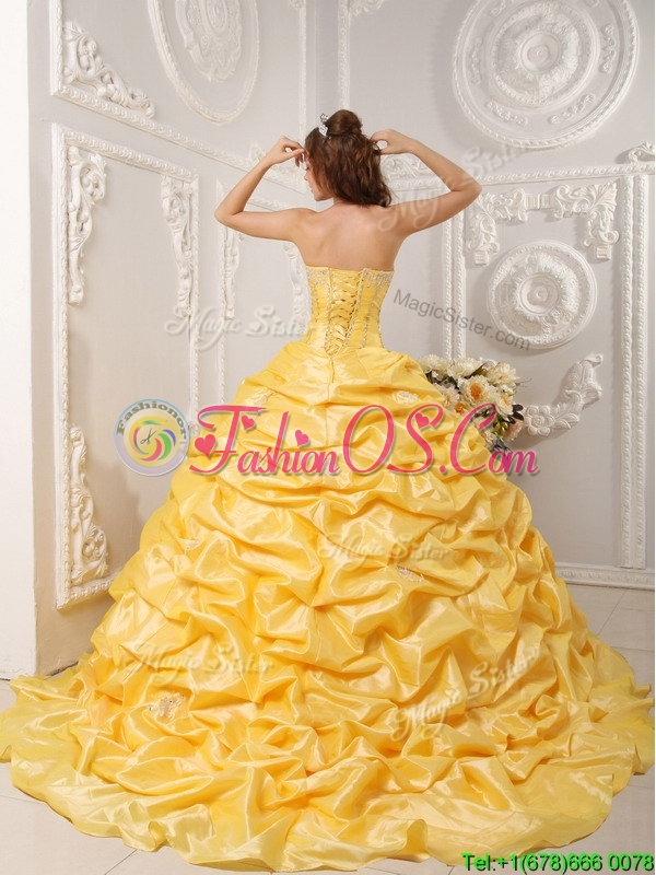 Elegant Ball Gown Court Train Appliques and Beading Sweet 16 Dresses