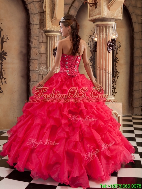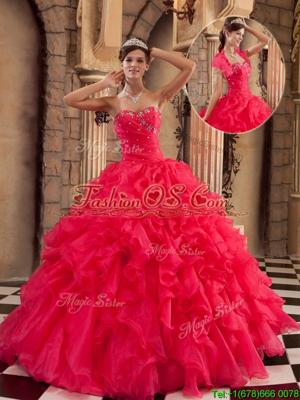 Popular Coral Red Sweetheart Sweet 16 Dresses with Beading