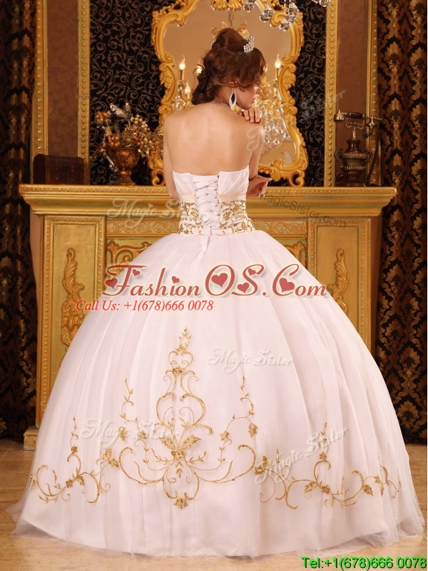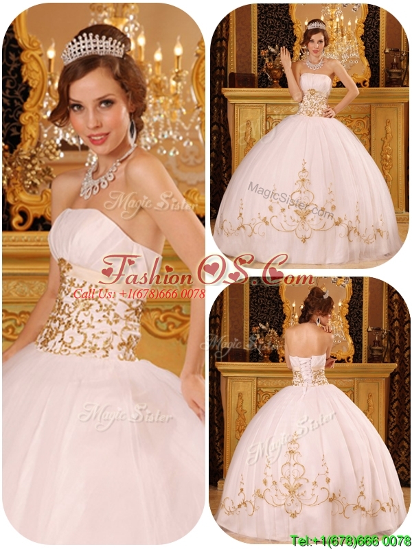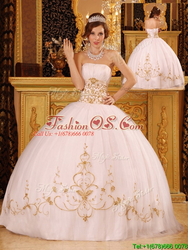 New Style White Ball Gown Strapless Floor Length Sweet 16 Dresses