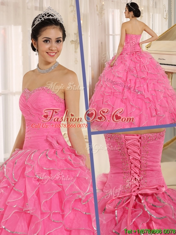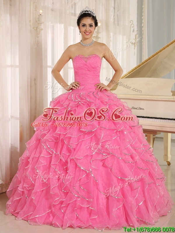 Latest Ruffles and Beading Rose Pink Sweet 16 Dresses
