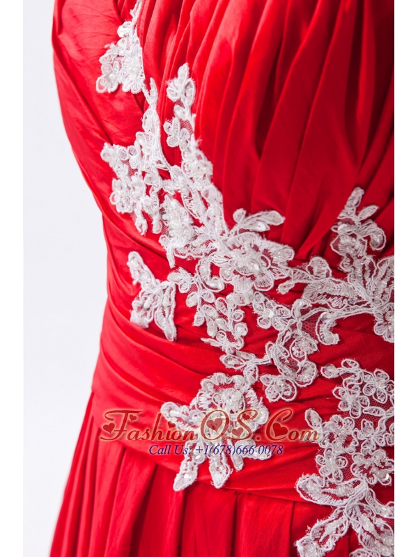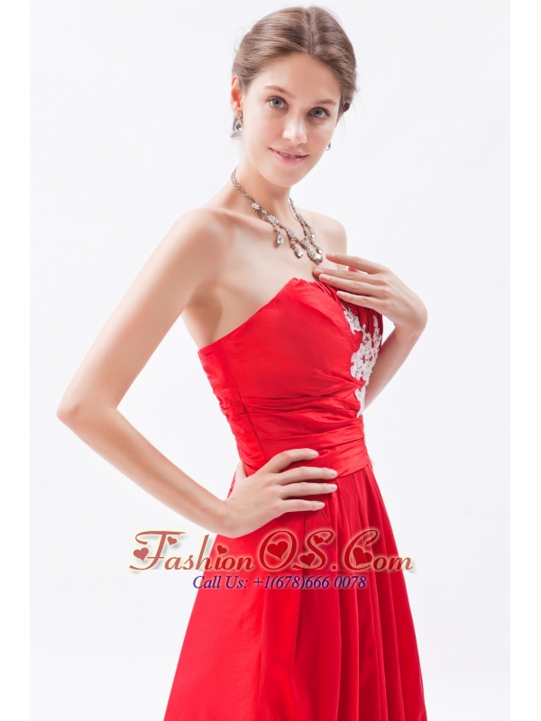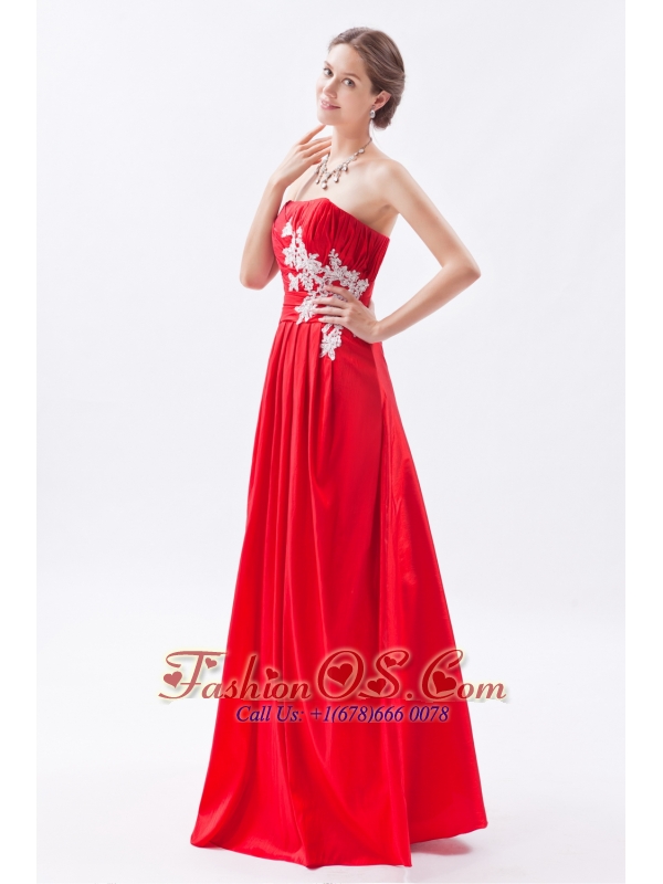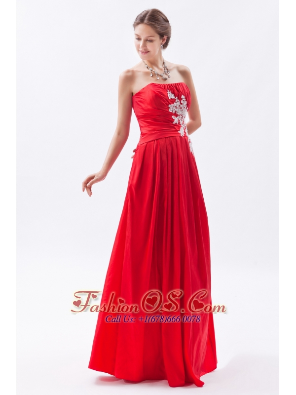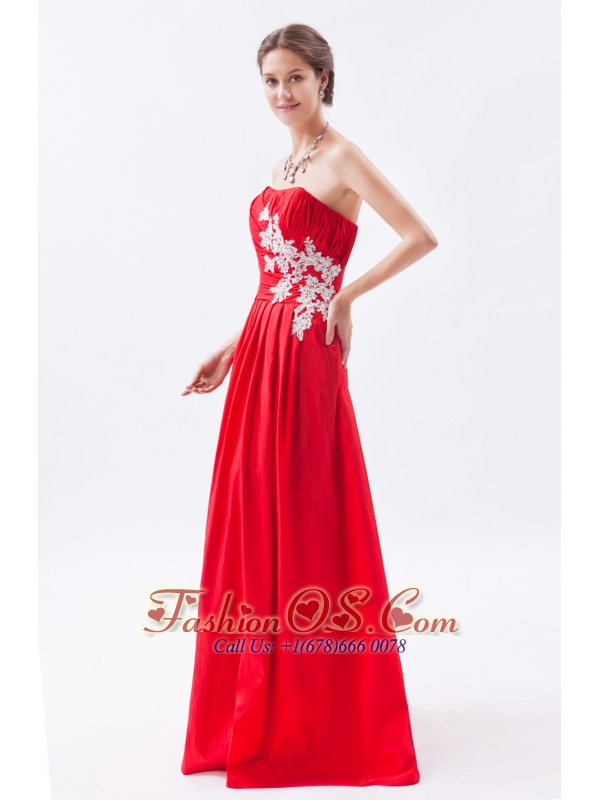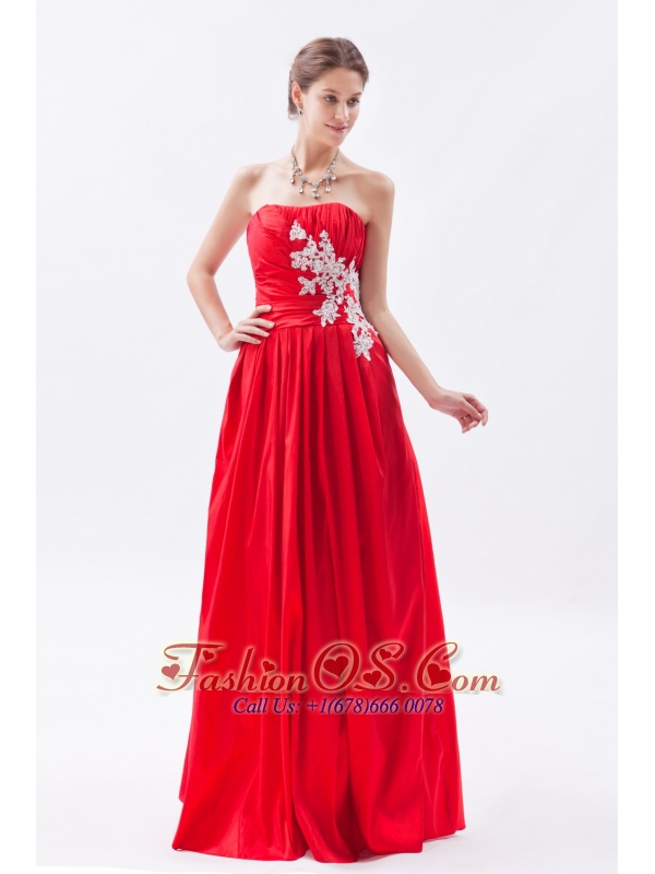 Red Column / Sheath Strapless Prom Dress Taffeta Appliques Floor-length