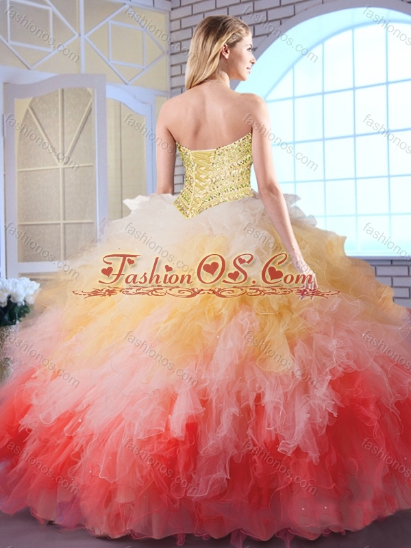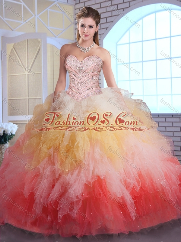 2016 Unique Ball Gown Sweet 16 Quinceanera Dresses in Multi Color with Beading and Ruffles